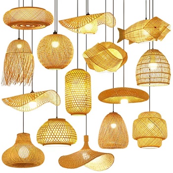 Candelabro de restaurante nuevo estilo chino estilo japonés lámpara tejida de bambú linterna arte de bambú lámpara tejida de ratán